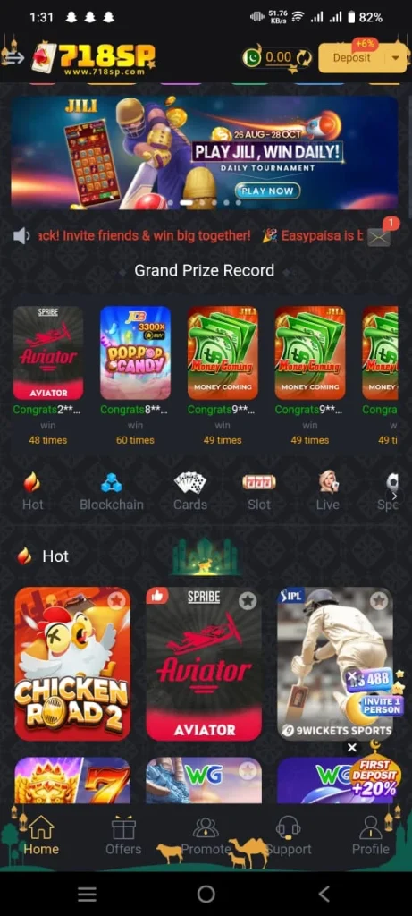 718SP Game supports daily play, referral earnings, and bonus-based rewards.